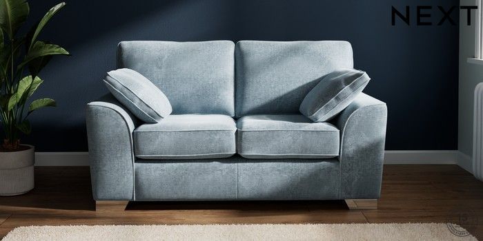 7.2.6 Buy Stamford 2 Seater Small Sofa Plush Chenille Light Blue Large Square Angle - Chrome Metal from the Laura Ashley online shop Click here to use our website with more accessibility support, for example screen readers
