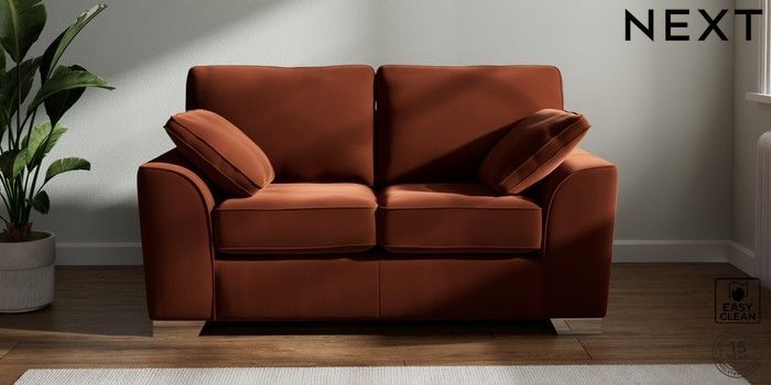 7.2.6 Buy Stamford 2 Seater Small Sofa Plush Velvet Easy Clean Ginger Orange Large Square Angle - Chrome Metal from the Laura Ashley online shop Click here to use our website with more accessibility support, for example screen readers