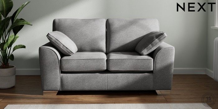 7.2.6 Buy Stamford 2 Seater Small Sofa Studio Chenille Mid Grey Large Square Angle - Chrome Metal from the Laura Ashley online shop Click here to use our website with more accessibility support, for example screen readers