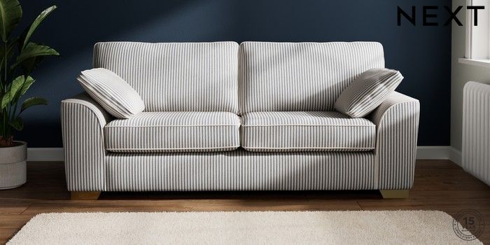 7.3.1 Buy Stamford 3 Seater Sofa Chenille Stripe Slate Blue Large Square Angle - Brushed Brass from the Laura Ashley online shop Click here to use our website with more accessibility support, for example screen readers