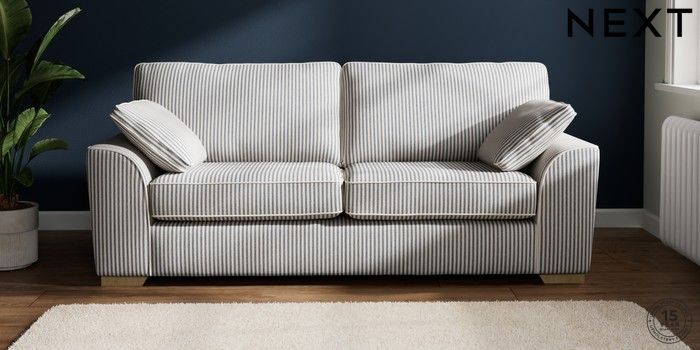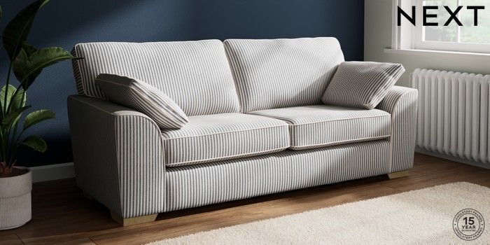 7.3.1 Buy Stamford 3 Seater Sofa Chenille Stripe Slate Blue Large Square Angle - Light from the Laura Ashley online shop Click here to use our website with more accessibility support, for example screen readers