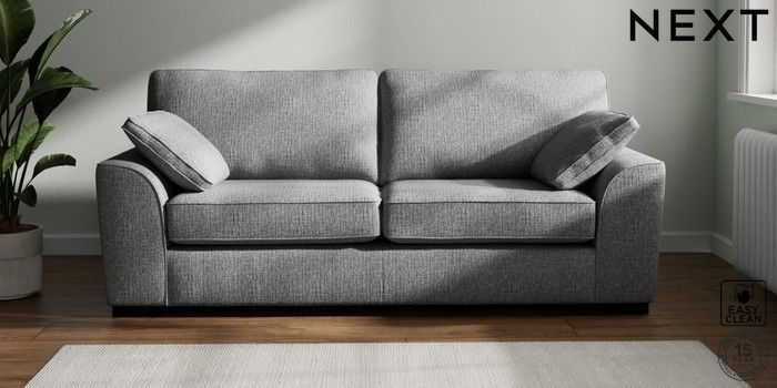 7.2.6 Buy Stamford 3 Seater Sofa Chunky Boucle Easy Clean Mid Grey Large Square Angle - Dark from the Laura Ashley online shop Click here to use our website with more accessibility support, for example screen readers