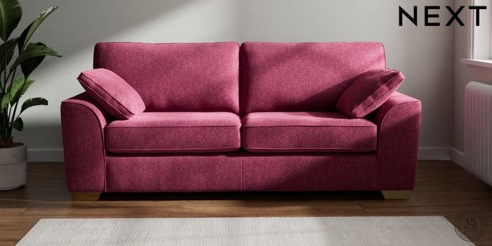 7.2.6 Buy Stamford 3 Seater Sofa Cotswold Chenille Dark Raspberry Pink Large Square Angle - Brushed Brass from the Laura Ashley online shop Click here to use our website with more accessibility support, for example screen readers
