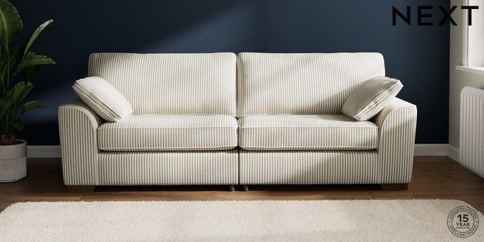 7.3.1 Buy Stamford 4 Seater Sofa Chenille Stripe Moss Green Large Square Angle - Mid from the Laura Ashley online shop Click here to use our website with more accessibility support, for example screen readers