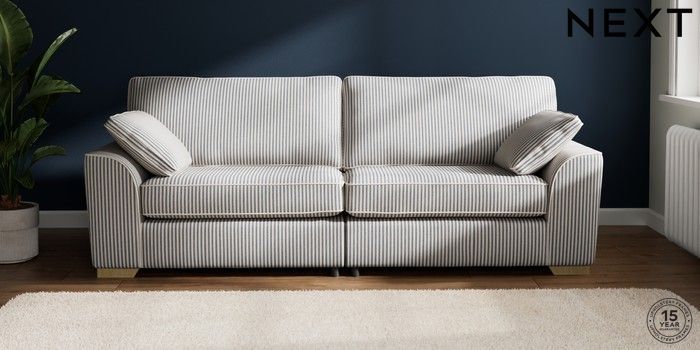 7.3.1 Buy Stamford 4 Seater Sofa Chenille Stripe Slate Blue Large Square Angle - Light from the Laura Ashley online shop Click here to use our website with more accessibility support, for example screen readers