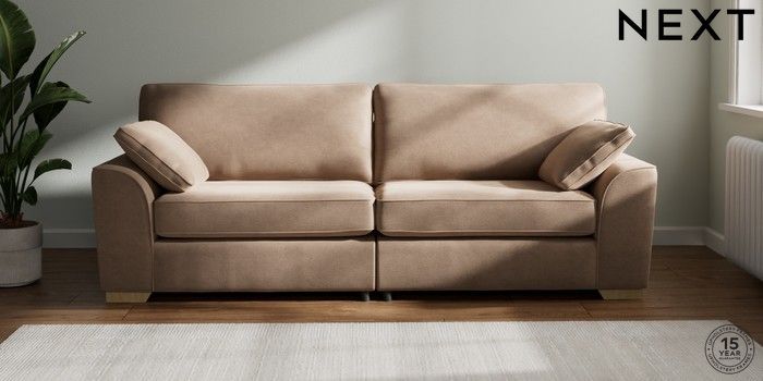 7.2.6 Buy Stamford 4 Seater Sofa Luxe Chenille Mid Natural Large Square Angle - Light from the Laura Ashley online shop Click here to use our website with more accessibility support, for example screen readers