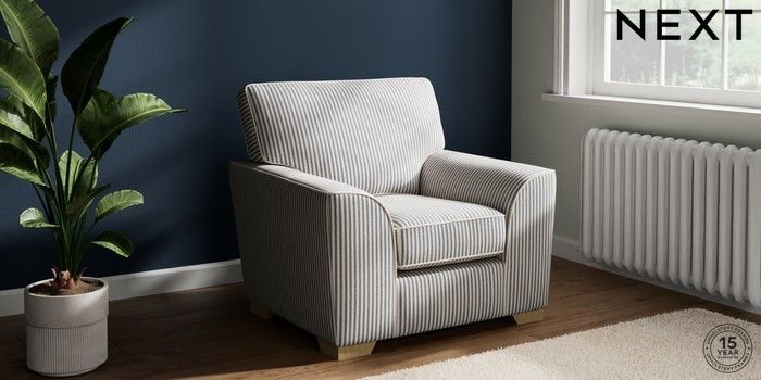 7.3.1 Buy Stamford Armchair Chenille Stripe Slate Blue Square Angle - Light from the Laura Ashley online shop Click here to use our website with more accessibility support, for example screen readers