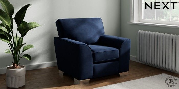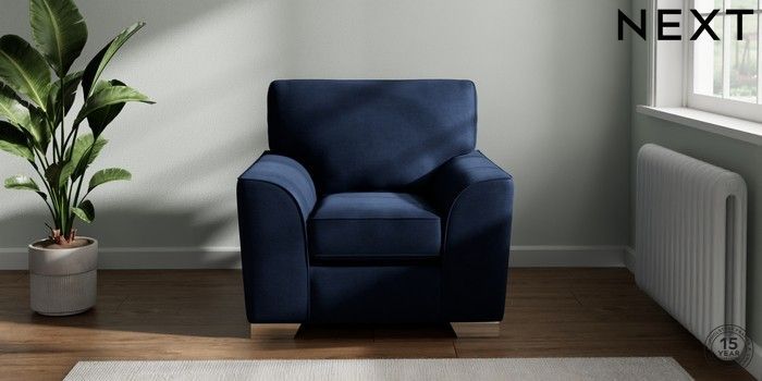 7.2.6 Buy Stamford Armchair Luxe Chenille Navy Blue Square Angle - Chrome Metal from the Laura Ashley online shop Click here to use our website with more accessibility support, for example screen readers