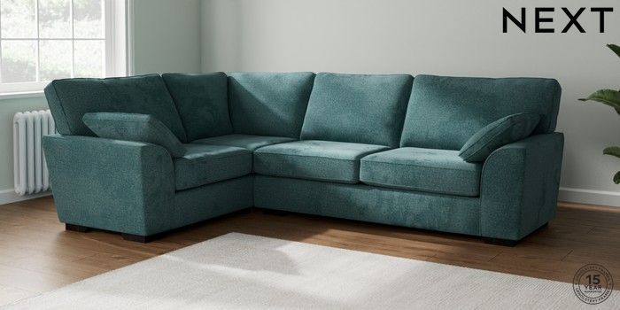 7.2.6 Buy Stamford Large Corner Sofa - Left Hand Chunky Chenille Mid Teal Green Large Square Angle - Dark from the Laura Ashley online shop Click here to use our website with more accessibility support, for example screen readers