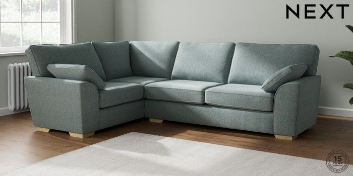 7.2.6 Buy Stamford Large Corner Sofa - Left Hand Chunky Marl Mid Blue Large Square Angle - Light from the Laura Ashley online shop Click here to use our website with more accessibility support, for example screen readers