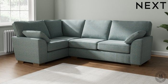 7.2.6 Buy Stamford Large Corner Sofa - Left Hand Chunky Marl Mid Blue Large Square Angle - Mid from the Laura Ashley online shop Click here to use our website with more accessibility support, for example screen readers