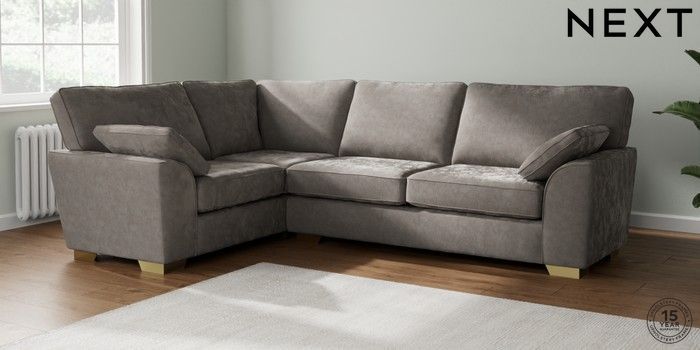 7.2.6 Buy Stamford Large Corner Sofa - Left Hand Distressed Velour French Grey Large Square Angle - Brushed Brass from the Laura Ashley online shop Click here to use our website with more accessibility support, for example screen readers