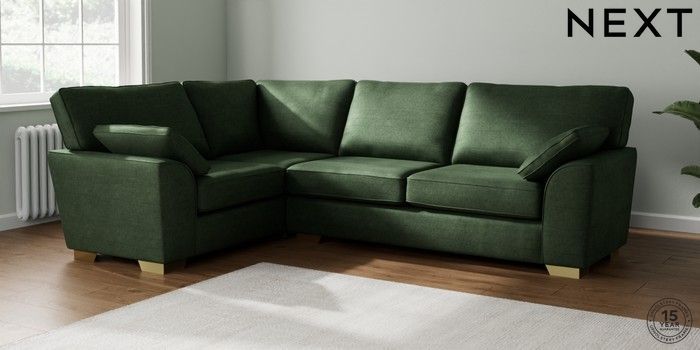 7.2.6 Buy Stamford Large Corner Sofa - Left Hand Luxe Chenille Dark Green Large Square Angle - Brushed Brass from the Laura Ashley online shop Click here to use our website with more accessibility support, for example screen readers