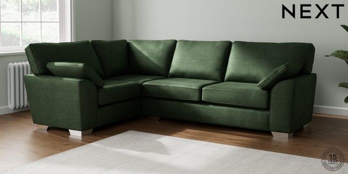 6.12.1 Buy Stamford Large Corner Sofa - Left Hand Luxe Chenille Dark Green Large Square Angle - Chrome Metal from the Laura Ashley online shop Click here to use our website with more accessibility support, for example screen readers