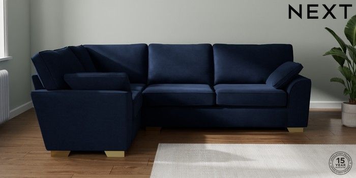 7.2.10 Buy Stamford Large Corner Sofa - Left Hand Luxe Chenille Navy Blue Large Square Angle - Brushed Brass from the Laura Ashley online shop Click here to use our website with more accessibility support, for example screen readers
