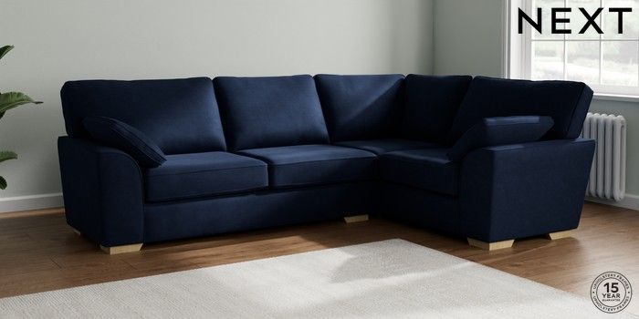 7.2.6 Buy Stamford Large Corner Sofa - Right Hand Luxe Chenille Navy Blue Large Square Angle - Light from the Laura Ashley online shop Click here to use our website with more accessibility support, for example screen readers