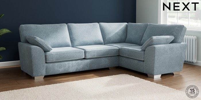 7.2.6 Buy Stamford Large Corner Sofa - Right Hand Plush Chenille Light Blue Large Square Angle - Chrome Metal from the Laura Ashley online shop Click here to use our website with more accessibility support, for example screen readers