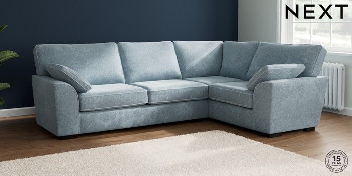 7.2.6 Buy Stamford Large Corner Sofa - Right Hand Plush Chenille Light Blue Large Square Angle - Dark from the Laura Ashley online shop Click here to use our website with more accessibility support, for example screen readers