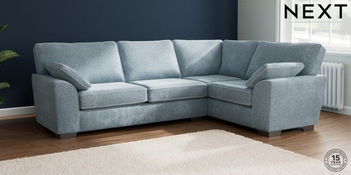 7.2.6 Buy Stamford Large Corner Sofa - Right Hand Plush Chenille Light Blue Large Square Angle - Gunmetal from the Laura Ashley online shop Click here to use our website with more accessibility support, for example screen readers