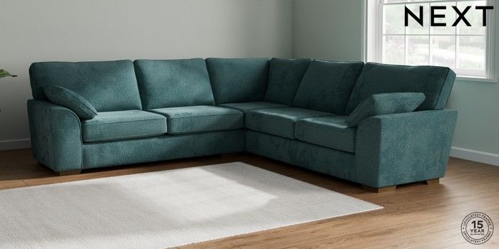 7.2.6 Buy Stamford Large Corner Sofa - Universal Chunky Chenille Mid Teal Green Large Square Angle - Mid from the Laura Ashley online shop Click here to use our website with more accessibility support, for example screen readers