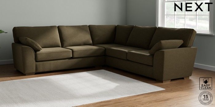 7.2.10 Buy Stamford Large Corner Sofa - Universal Fine Chenille Easy Clean Dark Moss Green Large Square Angle - Mid from the Laura Ashley online shop Click here to use our website with more accessibility support, for example screen readers