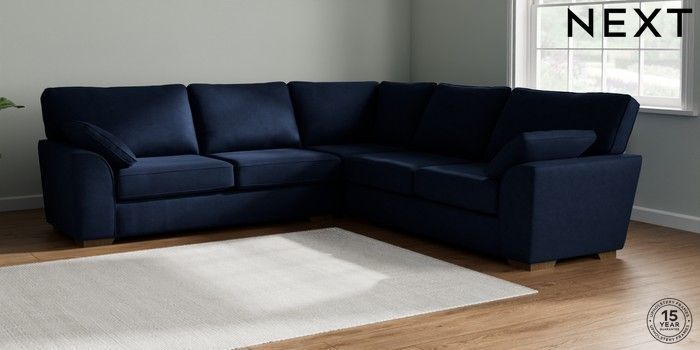 7.2.6 Buy Stamford Large Corner Sofa - Universal Luxe Chenille Navy Blue Large Square Angle - Mid from the Laura Ashley online shop Click here to use our website with more accessibility support, for example screen readers