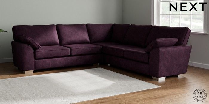 7.2.6 Buy Stamford Large Corner Sofa - Universal Plush Chenille Dark Plum Purple Large Square Angle - Chrome Metal from the Laura Ashley online shop Click here to use our website with more accessibility support, for example screen readers