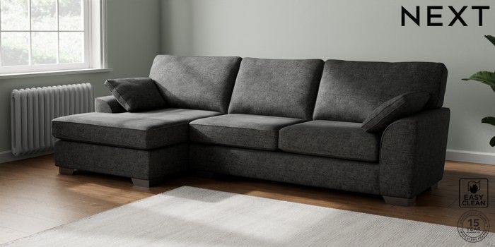 7.2.6 Buy Stamford Large Sofa Chaise - Left Hand Boucle Weave Easy Clean Charcoal Grey Large Square Angle - Gunmetal from the Laura Ashley online shop Click here to use our website with more accessibility support, for example screen readers