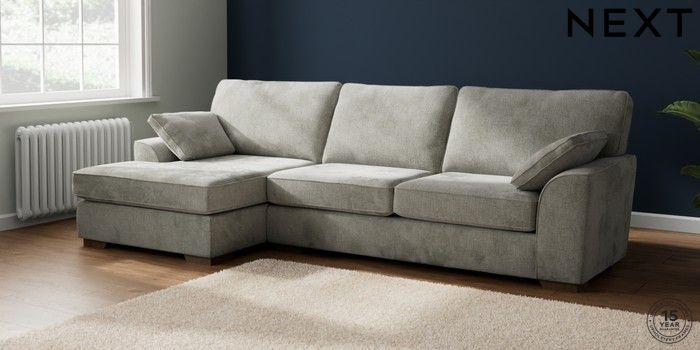 7.2.6 Buy Stamford Large Sofa Chaise - Left Hand Chunky Chenille Light Grey Large Square Angle - Mid from the Laura Ashley online shop Click here to use our website with more accessibility support, for example screen readers
