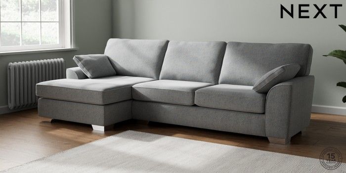 7.2.6 Buy Stamford Large Sofa Chaise - Left Hand Chunky Marl Mid Grey Large Square Angle - Chrome Metal from the Laura Ashley online shop Click here to use our website with more accessibility support, for example screen readers