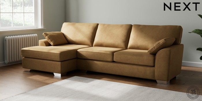7.2.6 Buy Stamford Large Sofa Chaise - Left Hand Luxe Chenille Honey Yellow Large Square Angle - Chrome Metal from the Laura Ashley online shop Click here to use our website with more accessibility support, for example screen readers