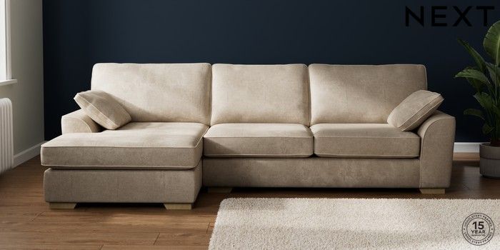 7.2.10 Buy Stamford Large Sofa Chaise - Left Hand Plush Chenille Light Natural Large Square Angle - Light from the Laura Ashley online shop Click here to use our website with more accessibility support, for example screen readers