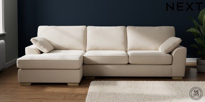 7.2.10 Buy Stamford Large Sofa Chaise - Left Hand Studio Chenille Oyster Large Square Angle - Light from the Laura Ashley online shop Click here to use our website with more accessibility support, for example screen readers