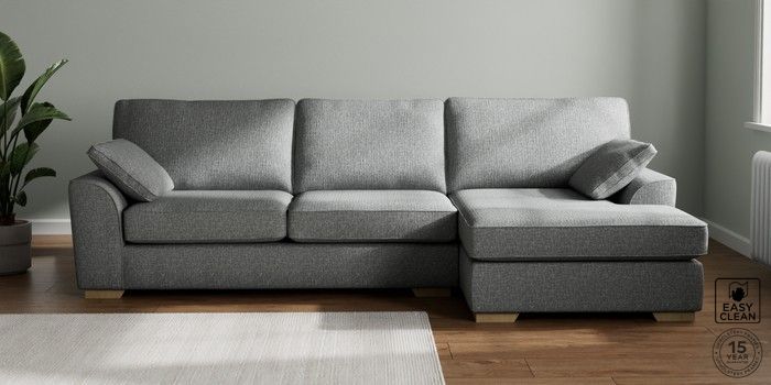 6.12.13 Buy Stamford Large Sofa Chaise - Right Hand Chunky Boucle Easy Clean Mid Grey Large Square Angle - Light from the Laura Ashley online shop Click here to use our website with more accessibility support, for example screen readers