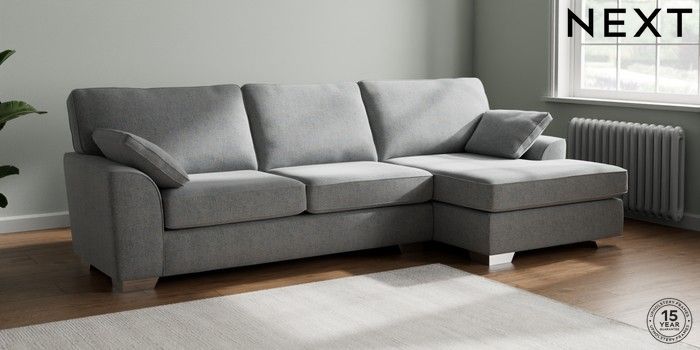 7.2.6 Buy Stamford Large Sofa Chaise - Right Hand Chunky Marl Mid Grey Large Square Angle - Chrome Metal from the Laura Ashley online shop Click here to use our website with more accessibility support, for example screen readers
