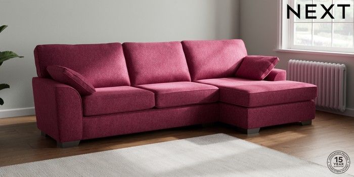 7.2.6 Buy Stamford Large Sofa Chaise - Right Hand Cotswold Chenille Dark Raspberry Pink Large Square Angle - Gunmetal from the Laura Ashley online shop Click here to use our website with more accessibility support, for example screen readers