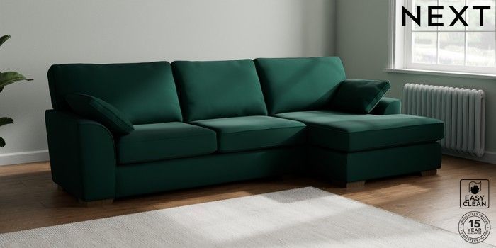 7.2.6 Buy Stamford Large Sofa Chaise - Right Hand Plush Velvet Easy Clean Bottle Green Large Square Angle - Mid from the Laura Ashley online shop Click here to use our website with more accessibility support, for example screen readers