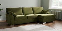 6.12.1 Buy Stamford Large Sofa Chaise - Right Hand Plush Velvet Easy Clean Mid Olive Green Large Square Angle - Chrome Metal from the Laura Ashley online shop Click here to use our website with more accessibility support, for example screen readers