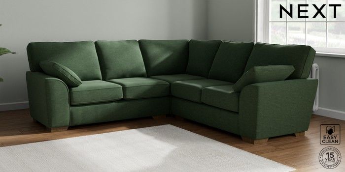 7.2.6 Buy Stamford Medium Corner Sofa - Universal Fine Chenille Easy Clean Mid Khaki Green Large Square Angle - Mid from the Laura Ashley online shop Click here to use our website with more accessibility support, for example screen readers