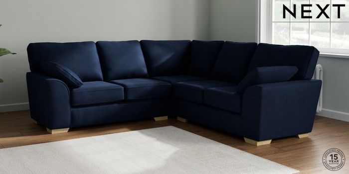 7.2.6 Buy Stamford Medium Corner Sofa - Universal Luxe Chenille Navy Blue Large Square Angle - Light from the Laura Ashley online shop Click here to use our website with more accessibility support, for example screen readers