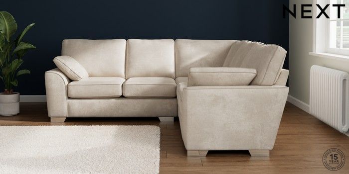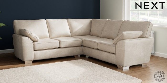 7.2.10 Buy Stamford Medium Corner Sofa - Universal Plush Chenille Oyster Large Square Angle - Chrome Metal from the Laura Ashley online shop Click here to use our website with more accessibility support, for example screen readers