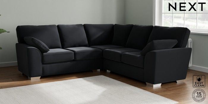 6.12.1 Buy Stamford Medium Corner Sofa - Universal Plush Velvet Easy Clean Charcoal Grey Large Square Angle - Chrome Metal from the Laura Ashley online shop Click here to use our website with more accessibility support, for example screen readers