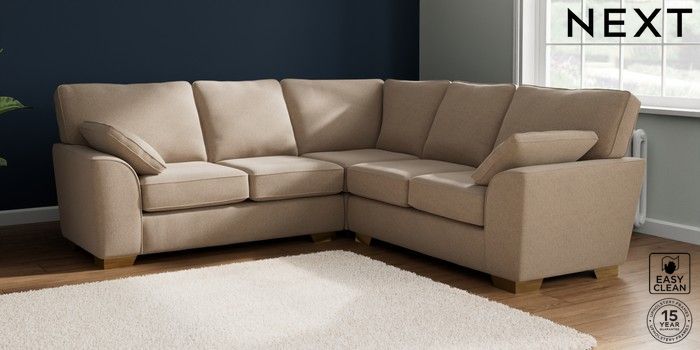 7.2.6 Buy Stamford Medium Corner Sofa - Universal Tweedy Blend Easy Clean Light Dove Natural Large Square Angle - Brushed Brass from the Laura Ashley online shop Click here to use our website with more accessibility support, for example screen readers