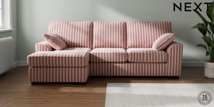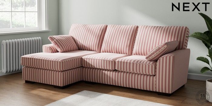 7.3.1 Buy Stamford Medium Sofa Chaise - Left Hand Bold Chenille Stripe Dark Pink Large Square Angle - Dark from the Laura Ashley online shop Click here to use our website with more accessibility support, for example screen readers