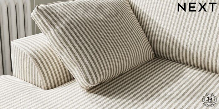 7.3.1 Buy Stamford Medium Sofa Chaise - Left Hand Chenille Stripe Moss Green Large Square Angle - Brushed Brass from the Laura Ashley online shop Click here to use our website with more accessibility support, for example screen readers