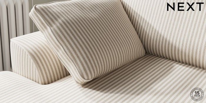 7.3.1 Buy Stamford Medium Sofa Chaise - Left Hand Chenille Stripe Natural Large Square Angle - Chrome Metal from the Laura Ashley online shop Click here to use our website with more accessibility support, for example screen readers