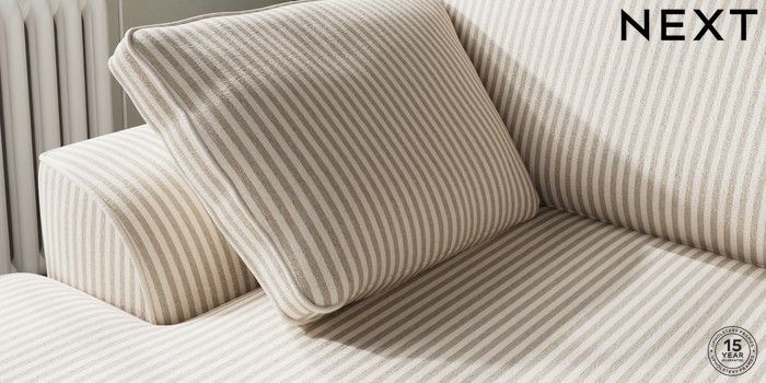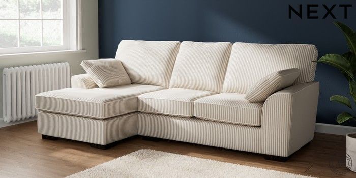 7.3.1 Buy Stamford Medium Sofa Chaise - Left Hand Chenille Stripe Natural Large Square Angle - Dark from the Laura Ashley online shop Click here to use our website with more accessibility support, for example screen readers