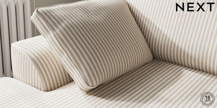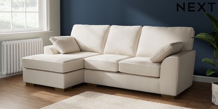 7.3.1 Buy Stamford Medium Sofa Chaise - Left Hand Chenille Stripe Natural Large Square Angle - Mid from the Laura Ashley online shop Click here to use our website with more accessibility support, for example screen readers