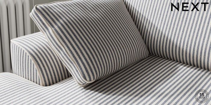 7.3.1 Buy Stamford Medium Sofa Chaise - Left Hand Chenille Stripe Slate Blue Large Square Angle - Brushed Brass from the Laura Ashley online shop Click here to use our website with more accessibility support, for example screen readers
