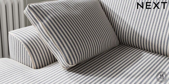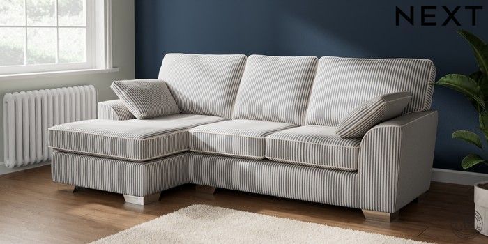 7.3.1 Buy Stamford Medium Sofa Chaise - Left Hand Chenille Stripe Slate Blue Large Square Angle - Chrome Metal from the Laura Ashley online shop Click here to use our website with more accessibility support, for example screen readers